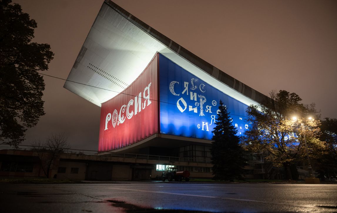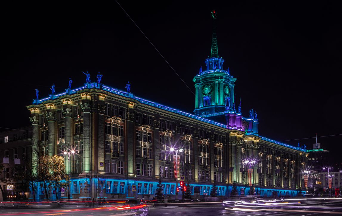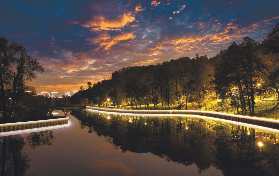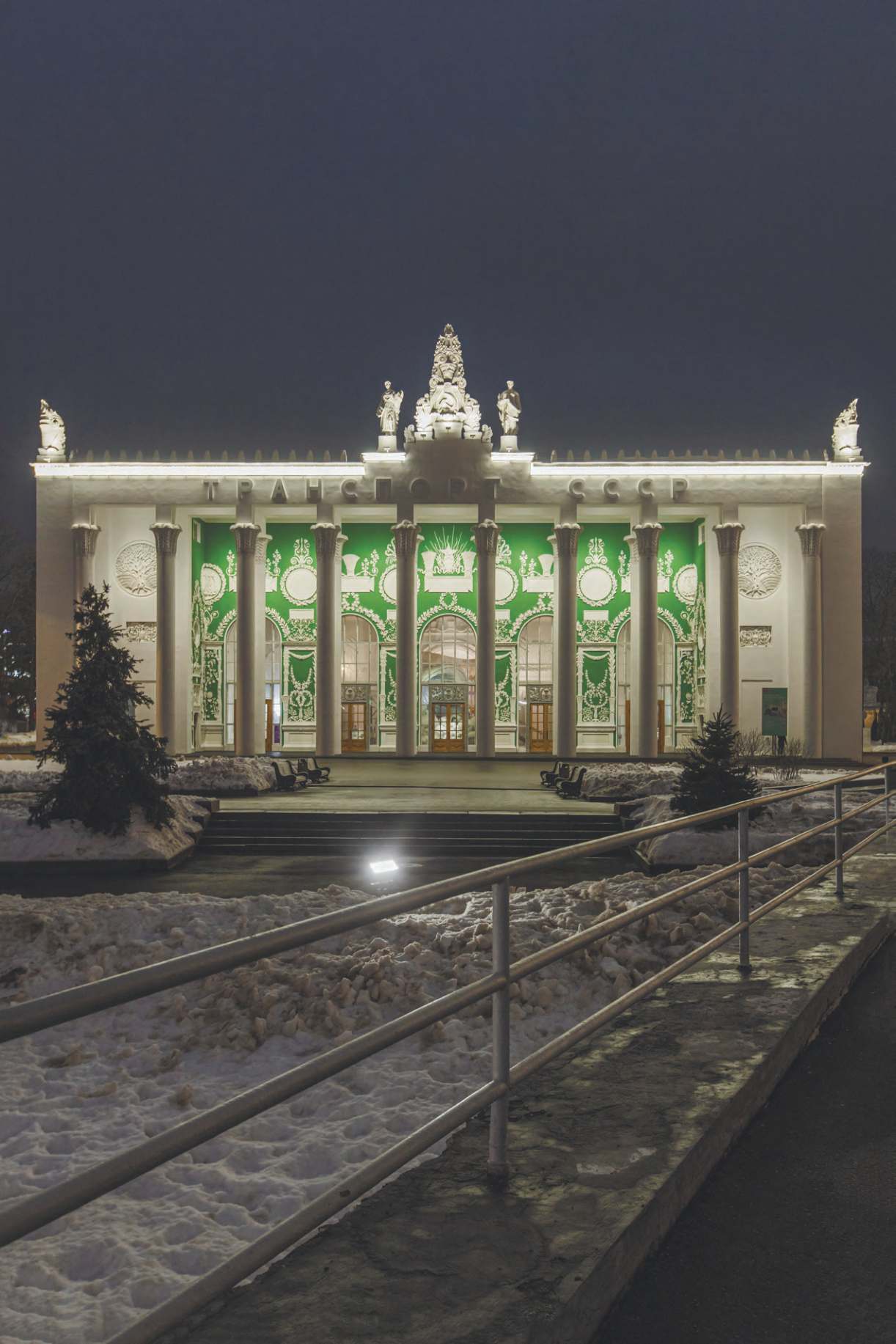 Суммарно почти 500 акцентных светильников выделяют верхние части колонн.